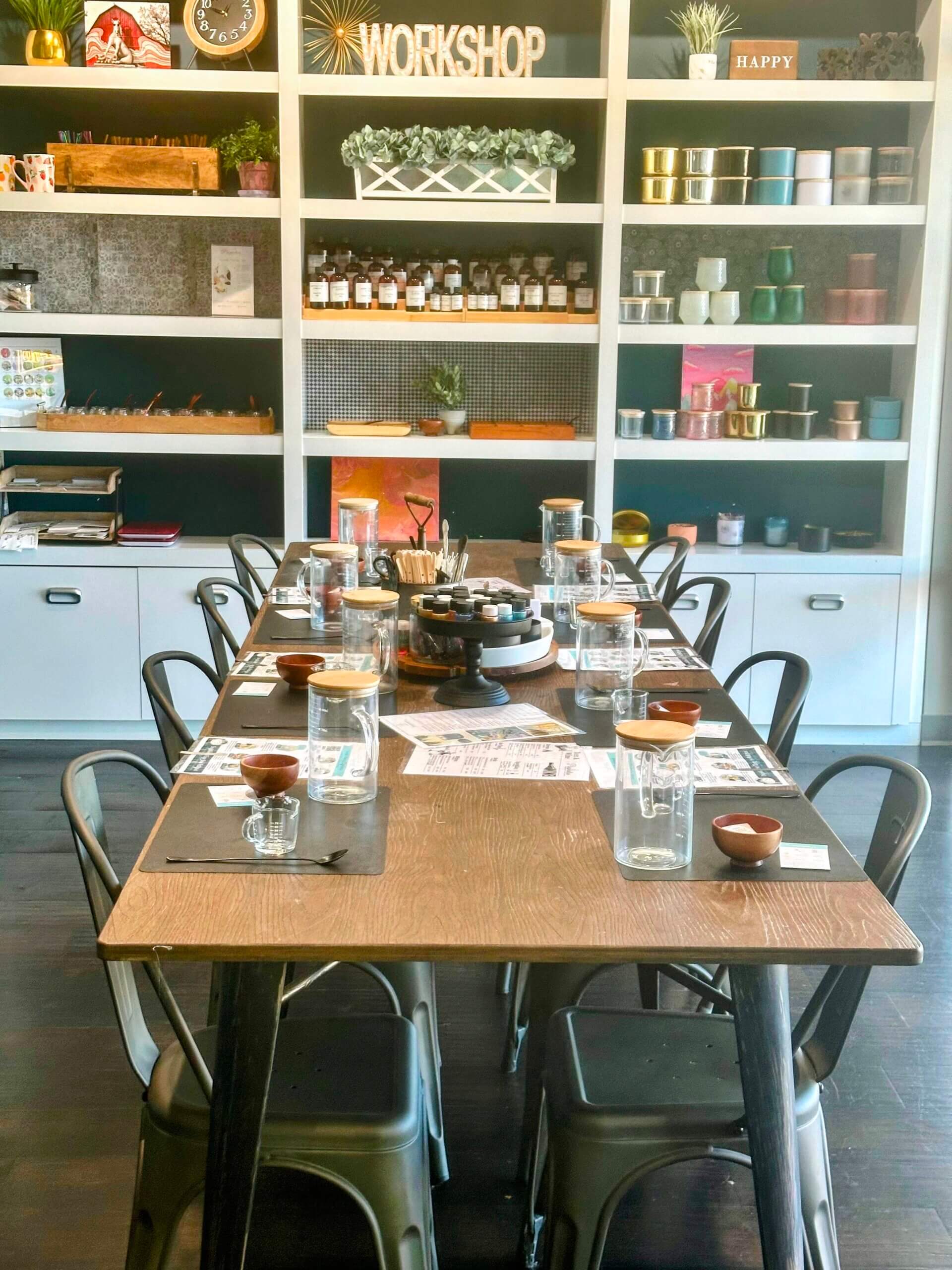 Our candle-making experience is led by expert instructors who will guide you through the process step by step. Select a premium vessel. Choose a signature scent. Pick a color. Select from various mix-in enhancements to complete your candle.