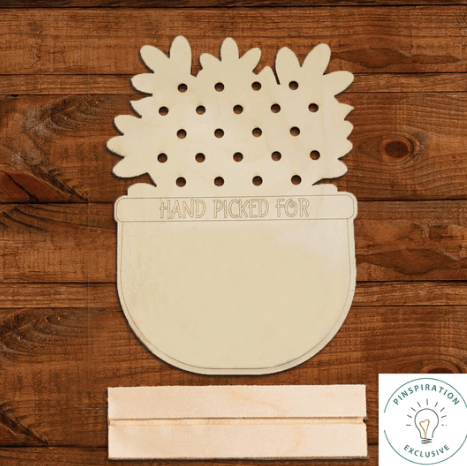 Paint, apply a vinyl decal, use stencils, and apply wood letters or embellishments. Choose from available vinyl phrases or further customize with your own. Flowers included.