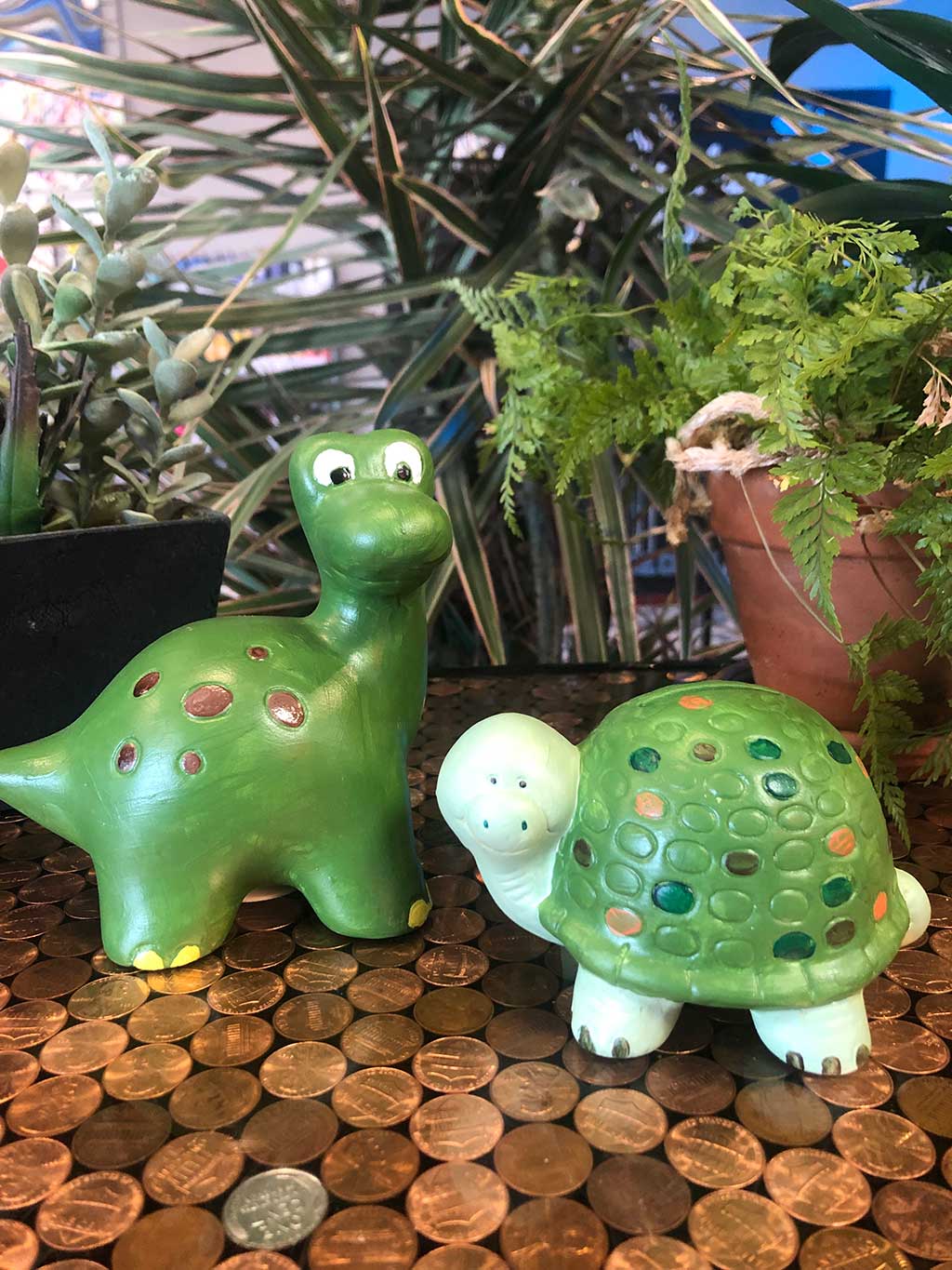 Select from a variety of ceramic figures to paint, including elephants, dinosaurs, owls, unicorns and more!