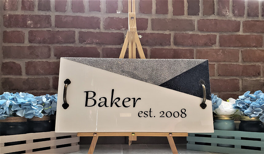 This rectangle tray is a fun way to learn a new skill and makes a gorgeous functional serving piece. Customize it to be as unique as you are, with personalized stencils or vinyl. Custom Vinyl requires 24 hour notice.
