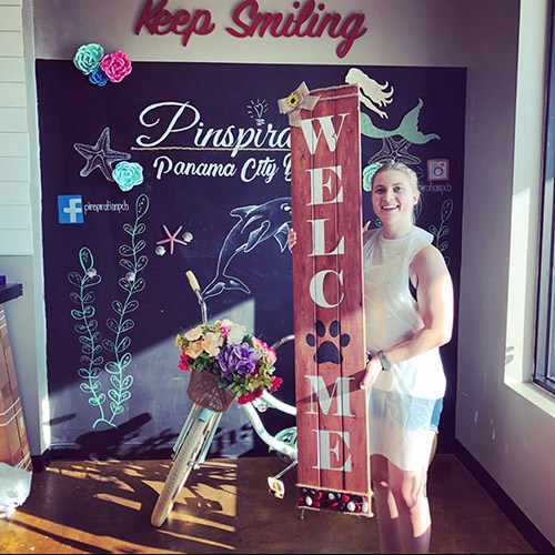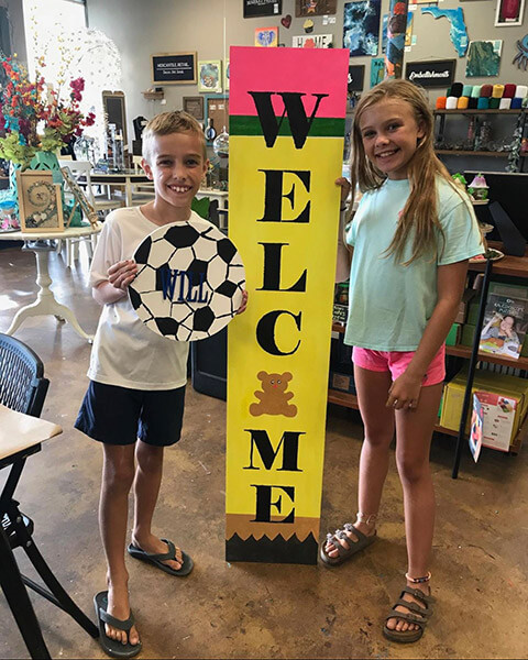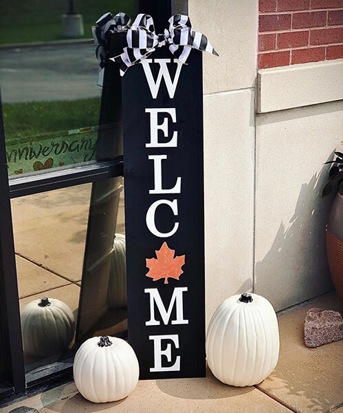 Welcome guests to your home with a 4 ft. tall vertical WELCOME sign. Comes with your choice of 3 unique wood cutouts to use in place of the “E” or the “O”! Use a variety of stains, paints and stencils to create your own front door greeting!