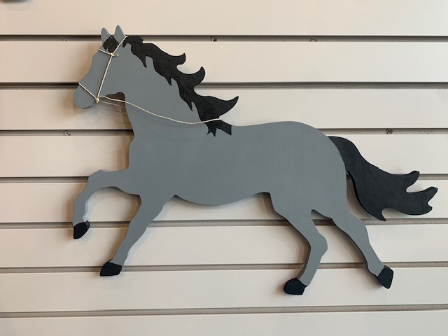 Awesome for equestrians’ rooms or to hang stable-side; this oversized running horse silhouette can be painted, embellished and personalized for either the horse and/or rider! Wood letters available for purchase.